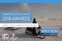 Secretariatul Organizației Națiunilor Unite pentru schimbările climatice solicită aplicaţii pentru Premiile Momentum for Change 2018 pentru a prezenta acțiunile și ambițiile, pe măsură ce guvernele naționale pun în aplicare Acordul de la Paris și îndeplinesc Obiectivele de Dezvoltare Durabilă.
